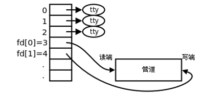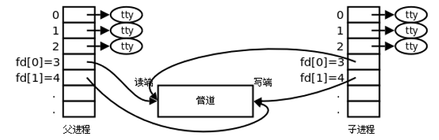 - 父进程调用 fork 创建子进程,那么子进程也有两个文件描述符指向同一管道。