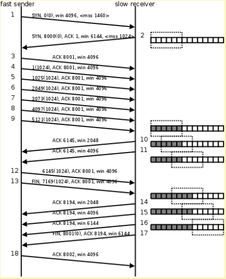 见下图:如果发送端发送的速度较快,接收端接收到数据后处理的速度较慢,而接收缓冲区的大小是固定的,就会导致接受缓冲区满而丢失数据。TCP 协议通过 “滑动窗口 (Sliding Window)” 机制解决这一问题